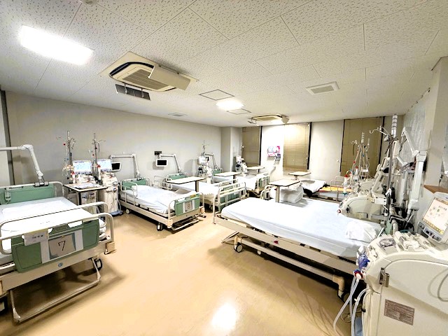 近年の高齢化社会において地域医療に貢献するために、送迎による外来透析だけでなく リハビリテーション目的の入院やご家族の負担軽減のための短期入院など、様々な ニーズにお答えできる透析室を目指しています。